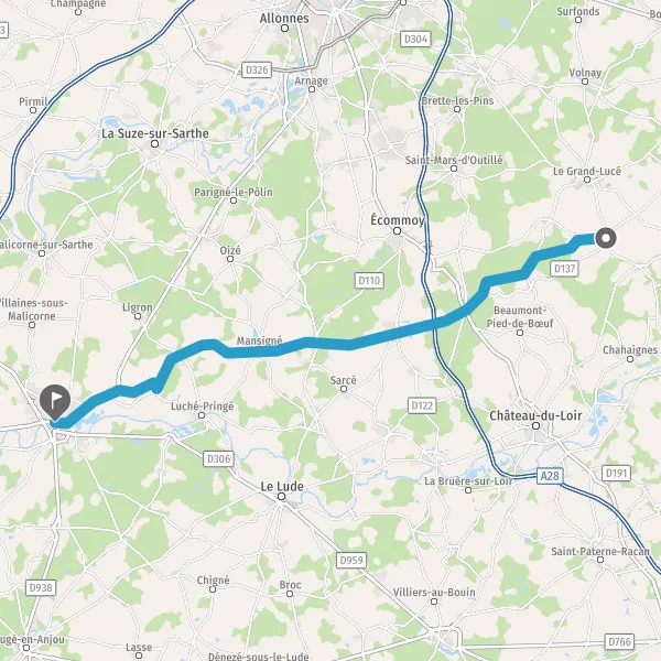 Tourner à droite sur D13 (Route de Mansigné) et continuer sur 4,4 kilomètres