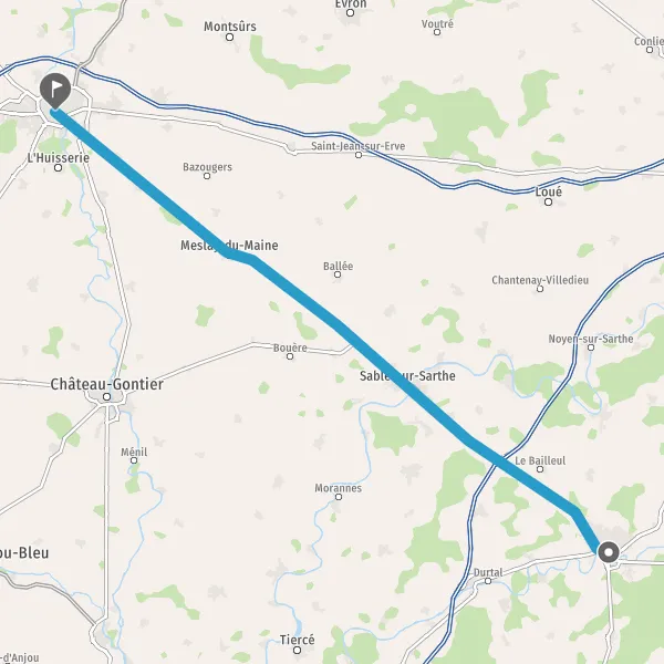 Au rond-point, prendre la 1ère sortie sur D21 (Rue de Sablé) et continuer sur 2,8 kilomètres