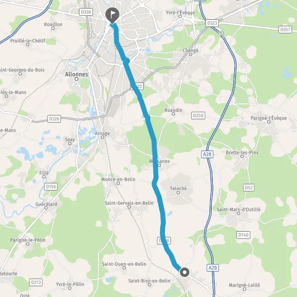Au rond-point, prendre la 2ème sortie sur D338 (Route du Mans) et continuer sur 4,9 kilomètres