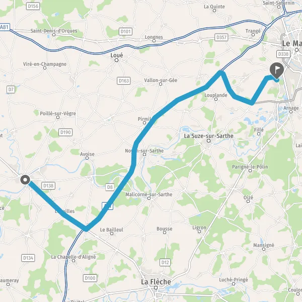 Au rond-point, prendre la 2ème sortie sur Route du Mans et continuer sur 1,6 kilomètre