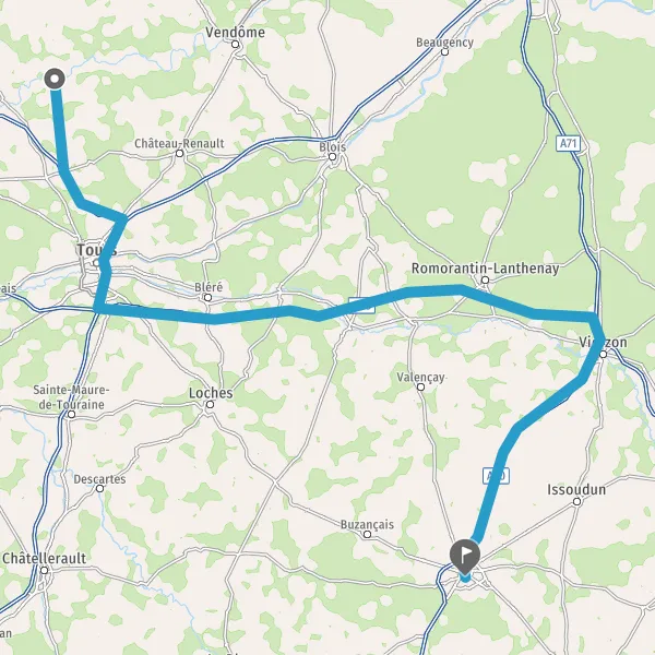 Prendre à droite et rejoindre A71. Continuer sur 5,5 kilomètres
