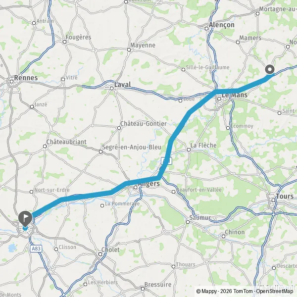 Prendre à droite et rejoindre A11 E50. Continuer sur 44 kilomètres