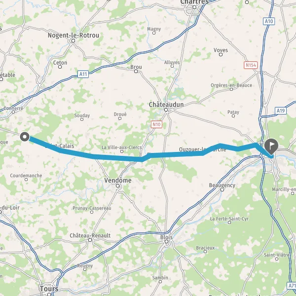 Prendre à droite et rejoindre D357 (Route d'Orléans). Continuer sur 13 kilomètres