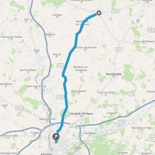 Au rond-point, prendre la 1ère sortie sur D300 (Route du Mans) et continuer sur 7,6 kilomètres