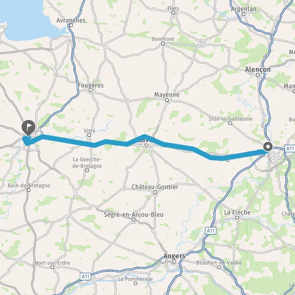 Prendre à droite et rejoindre A11 E50. Continuer sur 3,2 kilomètres
