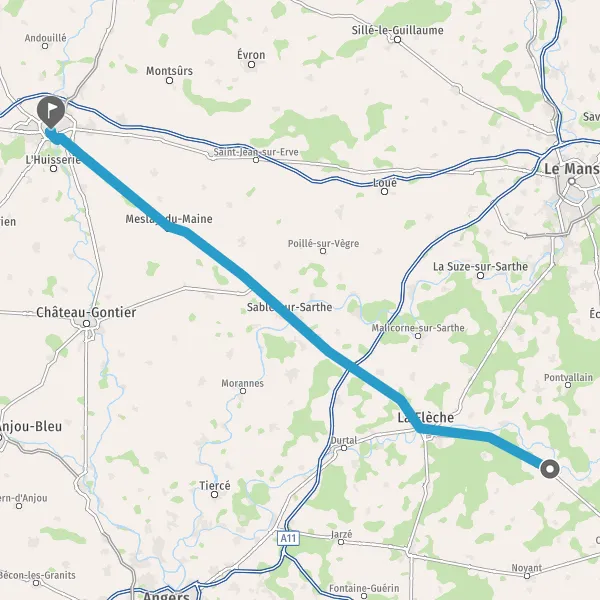 Au rond-point, prendre la 1ère sortie sur D21 (Rue de Sablé) et continuer sur 2,8 kilomètres
