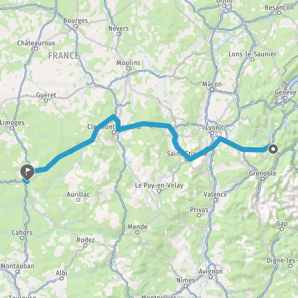 Prendre à droite et rejoindre A89 E70. Continuer sur 161 kilomètres