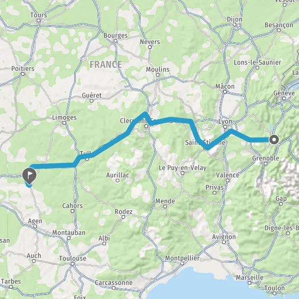 Prendre à droite et rejoindre A89 E70. Continuer sur 161 kilomètres