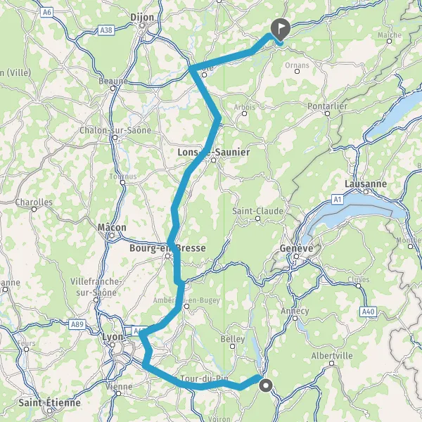 Continuer et rejoindre A43 E70. Continuer sur 73 kilomètres