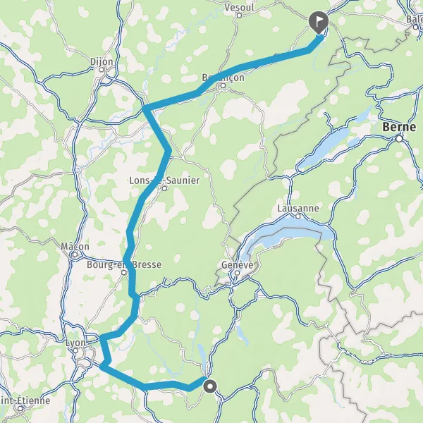 Prendre à droite et rejoindre A36 E60. Continuer sur 125 kilomètres