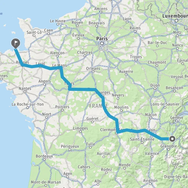 Prendre à droite et rejoindre A85 E604. Continuer sur 105 kilomètres