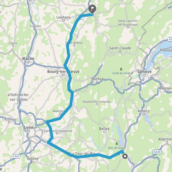 Continuer et rejoindre A43 E70. Continuer sur 73 kilomètres