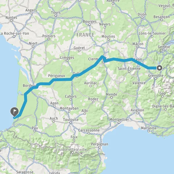 Prendre à droite et rejoindre A63. Continuer sur 117 kilomètres