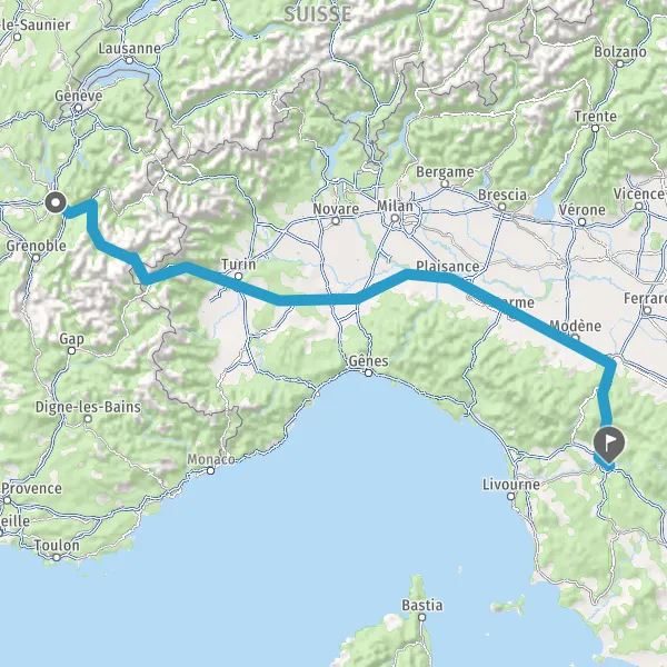 E70PIACENZAA21GENOVAA26E25MONCALIERISS393TORINOc.so. Unità d'ItaliaLingotto