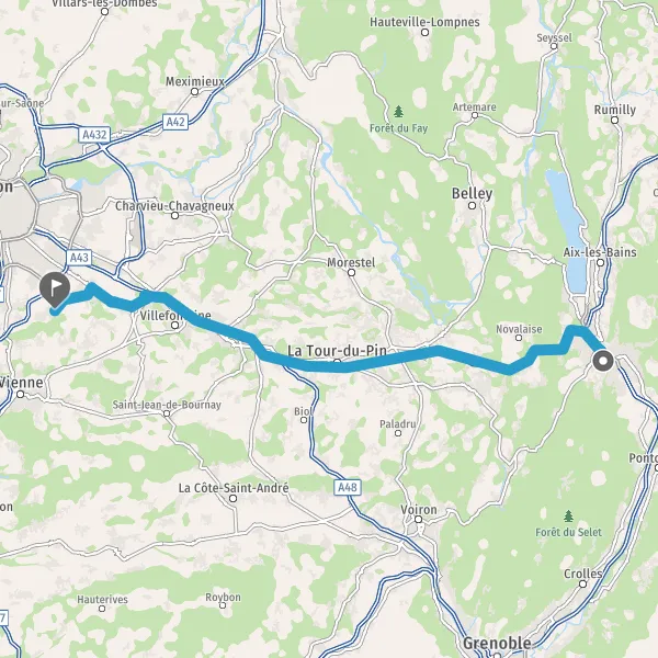Continuer et rejoindre A43 E70. Continuer sur 67 kilomètres