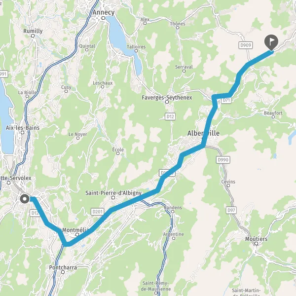 Au rond-point, prendre la 1ère sortie sur D1212 (Route d'Ugine) et continuer sur 7,1 kilomètres