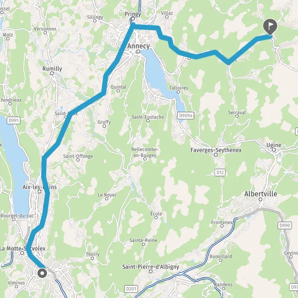 Au rond-point, prendre la 2ème sortie sur D909 (Route d'Annecy) et continuer sur 1,3 kilomètre