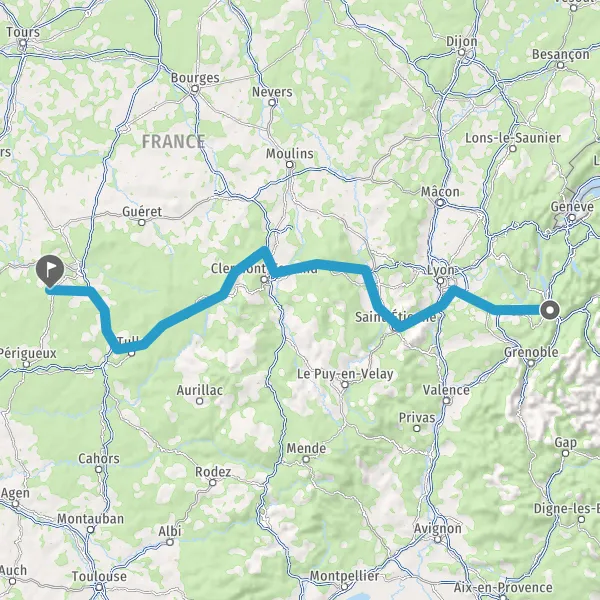 Prendre à droite et rejoindre A89 E70. Continuer sur 161 kilomètres