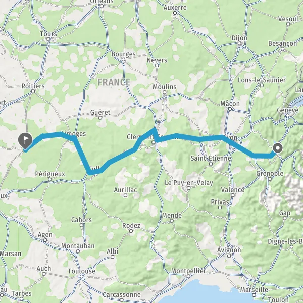 Prendre à droite et rejoindre A89 E70. Continuer sur 161 kilomètres
