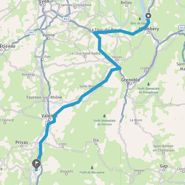 Prendre à droite et rejoindre A49. Continuer sur 71 kilomètres