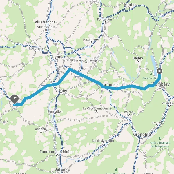 Prendre à gauche et rejoindre A46 E15 E70. Continuer sur 21 kilomètres