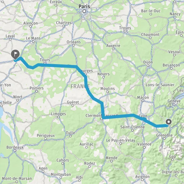 Prendre à droite et rejoindre A85 E604. Continuer sur 205 kilomètres