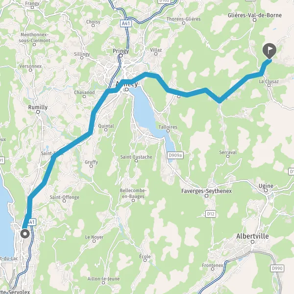 Au rond-point, prendre la 2ème sortie sur D909 (Route de Thônes) et continuer sur 4,5 kilomètres