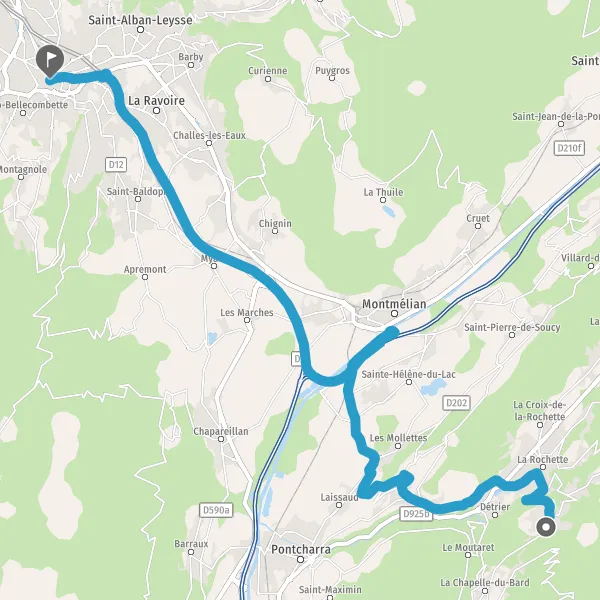 Au rond-point, prendre la 2ème sortie sur D923 (Route de la Savoyarde) et continuer sur 1,6 kilomètre