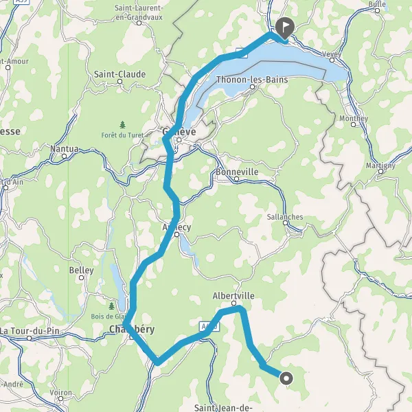 Prendre à droite et rejoindre A43. Continuer sur 7,8 kilomètres