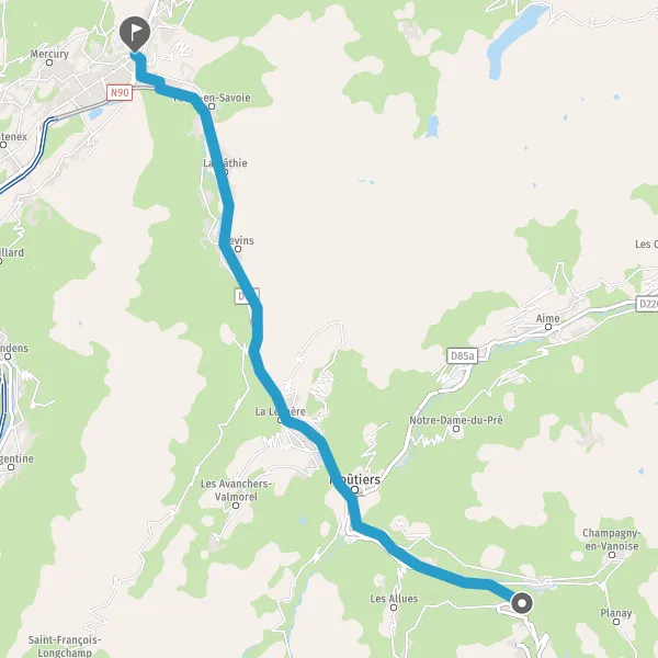 Prendre à droite et rejoindre D990 (Avenue de Tarentaise). Continuer sur 850 mètres