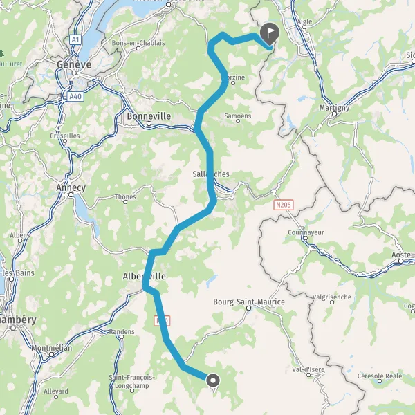 Tourner légèrement à droite sur D1205 (Avenue de Genève) et continuer sur 450 mètres