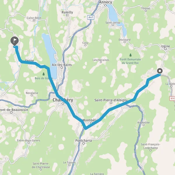 Au rond-point, prendre la 2ème sortie sur D1504 (Route de Yenne) et continuer sur 4,3 kilomètres