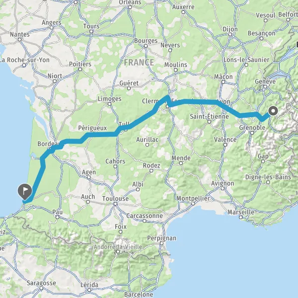 Prendre à droite et rejoindre A63. Continuer sur 154 kilomètres