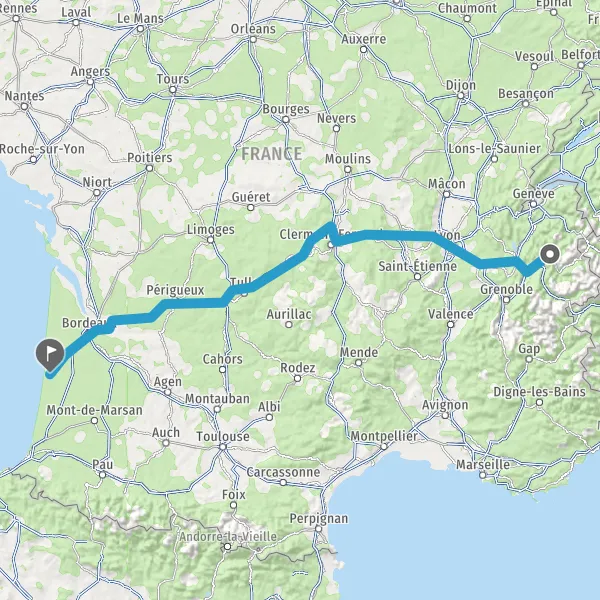 Prendre à droite et rejoindre A63. Continuer sur 25 kilomètres