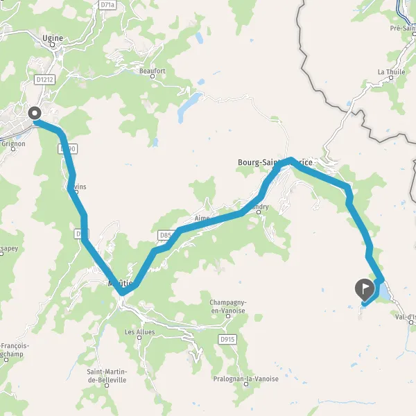 Au rond-point, prendre la 1ère sortie sur D902 (Route de Val-d'Isère) et continuer sur 5,4 kilomètres