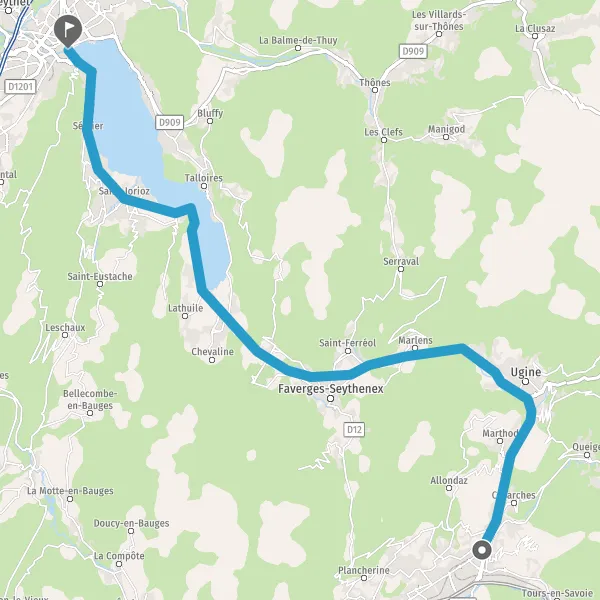 Itinéraire en voiture de Albertville 73200 à Annecy 74000-74960