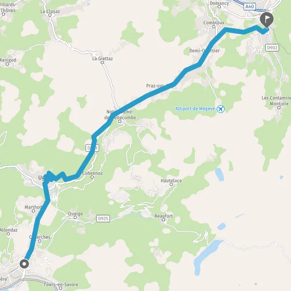 Au rond-point, prendre la 2ème sortie sur D1212 (Route de Megève) et continuer sur 3,6 kilomètres