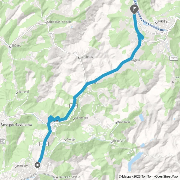 Au rond-point, prendre la 2ème sortie sur D1212 (Route de Megève) et continuer sur 3,6 kilomètres
