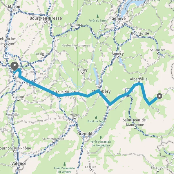 Avec le mode voiture, vous pouvez configurer vos options (type de véhicule, autoroute ou non, péage ou non, distance la plus courte), tout en ayant accès aux infos de circulation grâce à notre service d'info-trafic en temps réel. Ainsi faites des économies sur le coût ou la durée de votre voyage, en trouvant le trajet Aime-la-Plagne Lyon adapté à vos besoins.