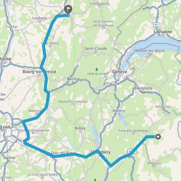 Continuer et rejoindre A43 E70. Continuer sur 73 kilomètres