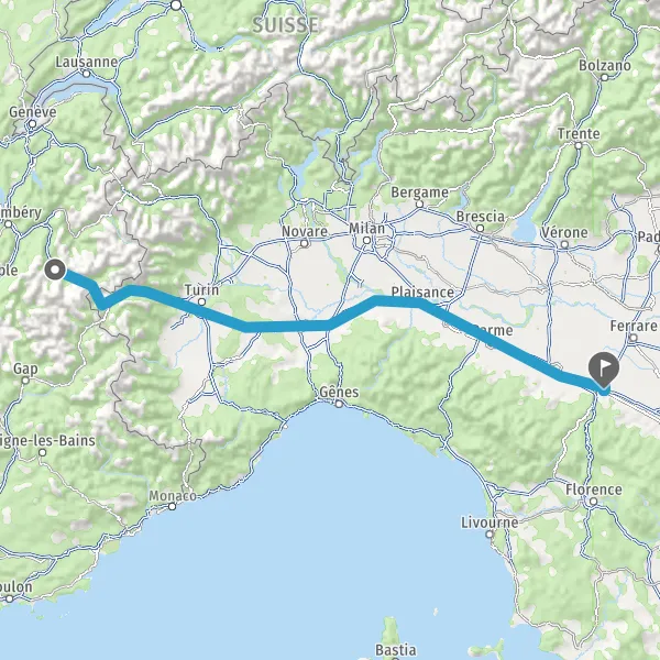 E70PIACENZAA21GENOVAA26E25MONCALIERISS393TORINOc.so. Unità d'ItaliaLingotto