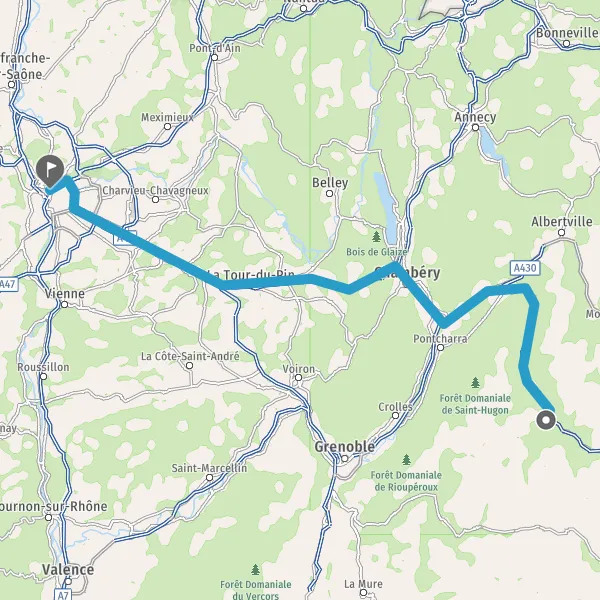 Continuer et rejoindre A43 E70. Continuer sur 80 kilomètres