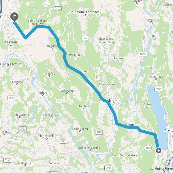 Tourner légèrement à droite sur D1504 (Route de Belley) et continuer sur 2,6 kilomètres