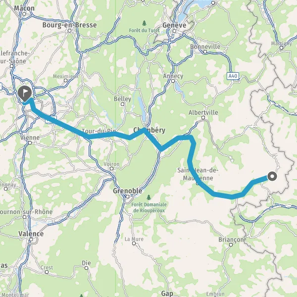Prendre à droite et rejoindre A43 E70. Continuer sur 65 kilomètres