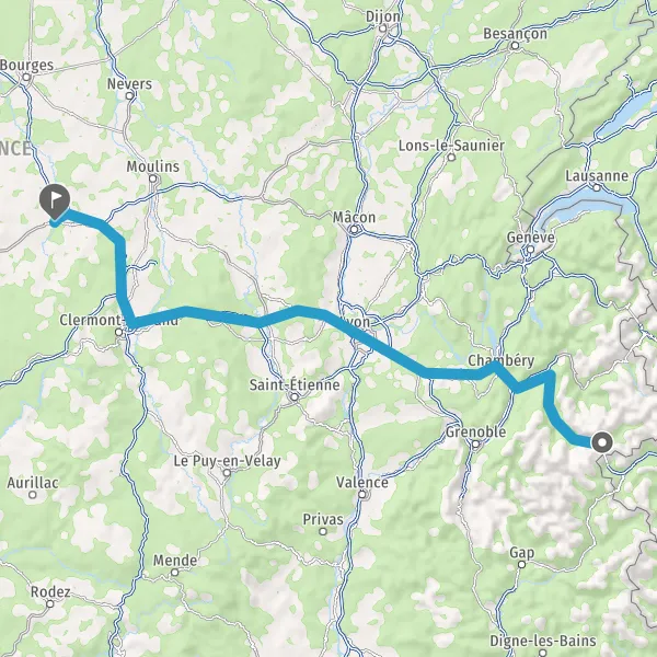 Prendre à droite et rejoindre A43 E70. Continuer sur 65 kilomètres