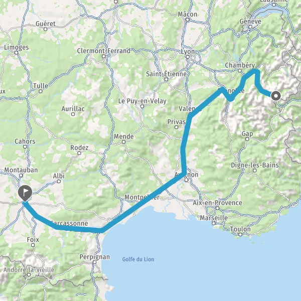 Prendre à droite et rejoindre A43 E70. Continuer sur 65 kilomètres