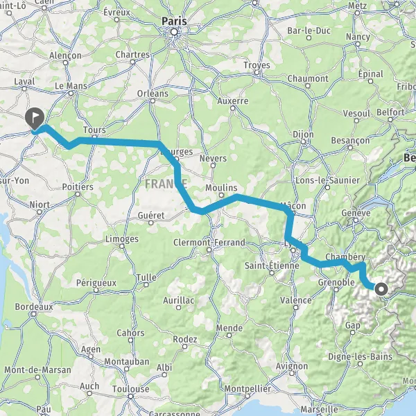 Prendre à droite et rejoindre A85 E604. Continuer sur 205 kilomètres