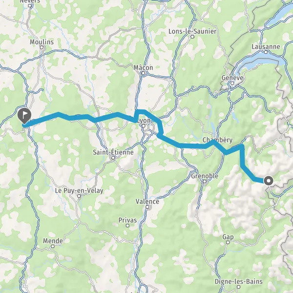 Prendre à droite et rejoindre A43 E70. Continuer sur 65 kilomètres
