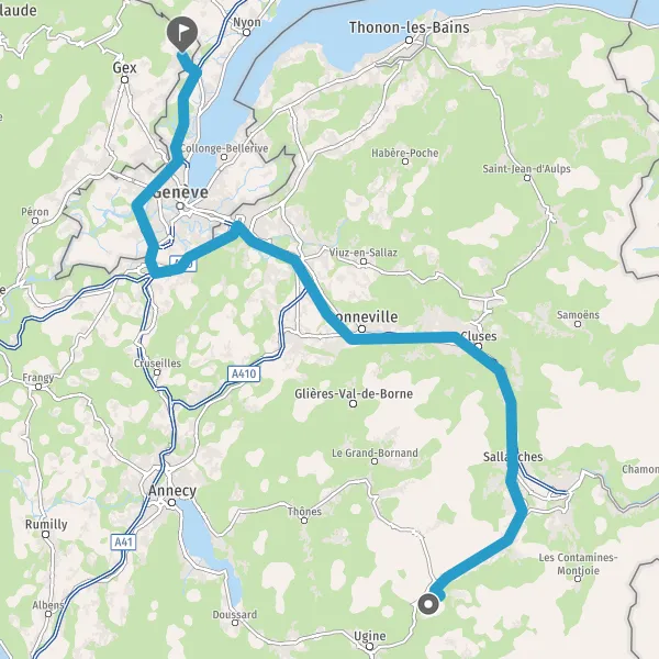Entrer en France et prendre Avenue de Genève sur 300 mètres