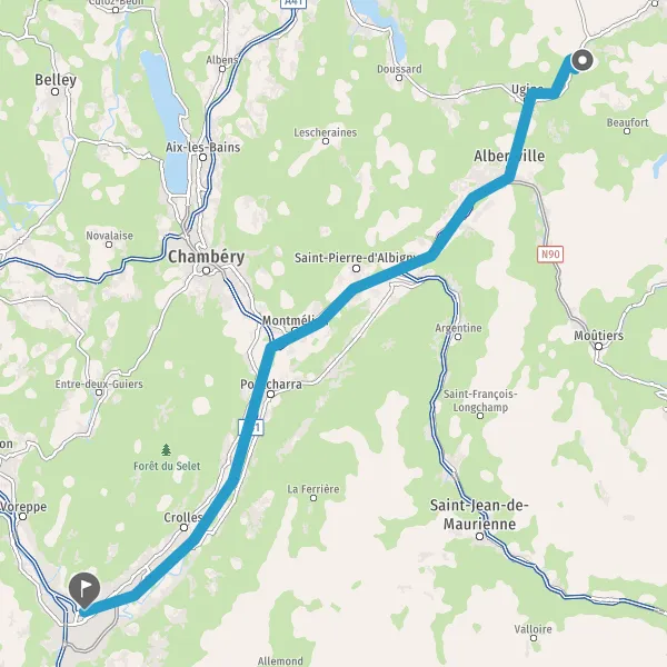 Au rond-point, prendre la 1ère sortie sur D1212 (Avenue de Savoie) et continuer sur 2,6 kilomètres